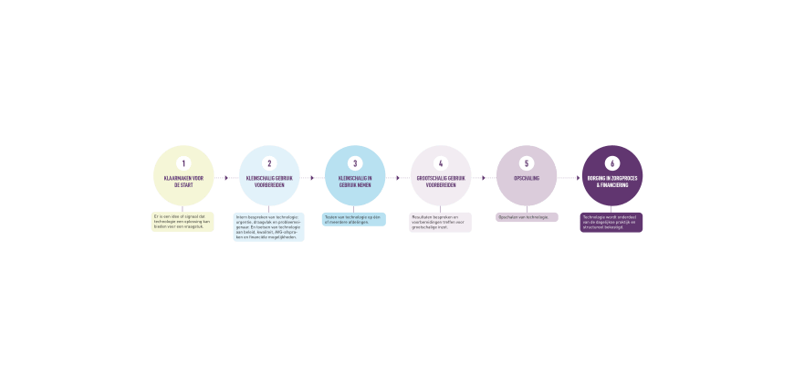 - Kleinschalig in gebruik nemen. Testen van technologie op een of meerdere afdelingen.